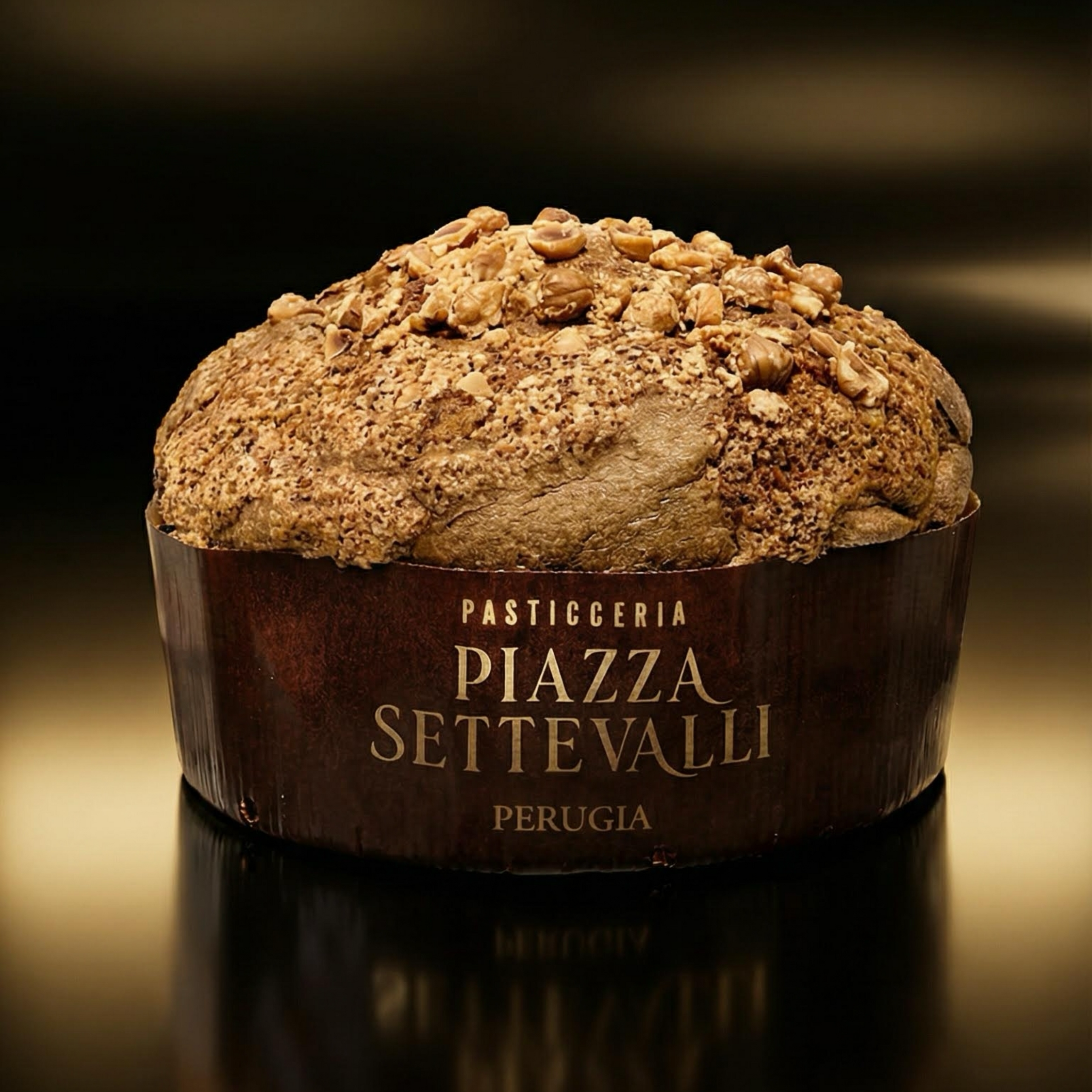 Questo panettone al cacao Intense Noir con pasta di nocciola pura e pezzi di cioccolato fondente è una creazione di Nicola Antonacci, maestro dell’Accademia del Lievito Madre, pensata per gli amanti del gusto intenso e avvolgente.